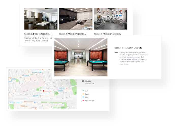 The website builder offers customized modules that you can enable or disable at will. Upload images, show off your condo gallery, brag about your amenties and talk about the neighbourhood. You are in full control of color schemes, images and text.